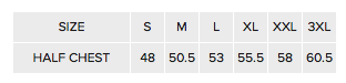 Half Chest (cm) 48 50.5 53 55.5 58 60.5